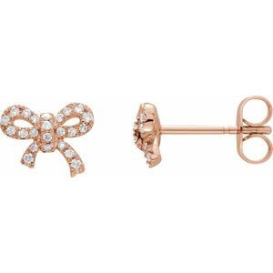 14K Rose Gold Bow 1/5 CTW Natural Diamond Earrings
