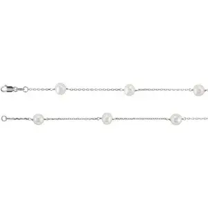 14K White Gold Cultured White Freshwater Pearl 14-Station 18" Necklace