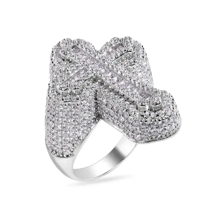 Rhodium Plated 925 Sterling Silver Cross Baguette Clear CZ Studded Top 31.5mm Ring